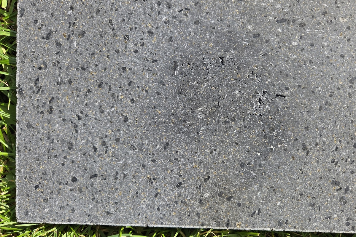 Prohlubně a dírky vznikají při řezu celých desek v Itálii, kdy se jedná o vzduchové bubliny / kapsy v lávovém kameni a nedokážeme je nijak ovlivnit. Prohlubně nebo dírky jsou obvykle v řádu několika mm a jedná se pouze o estetickou vadou a na grilovací funkci kamene nemá žádný vliv.